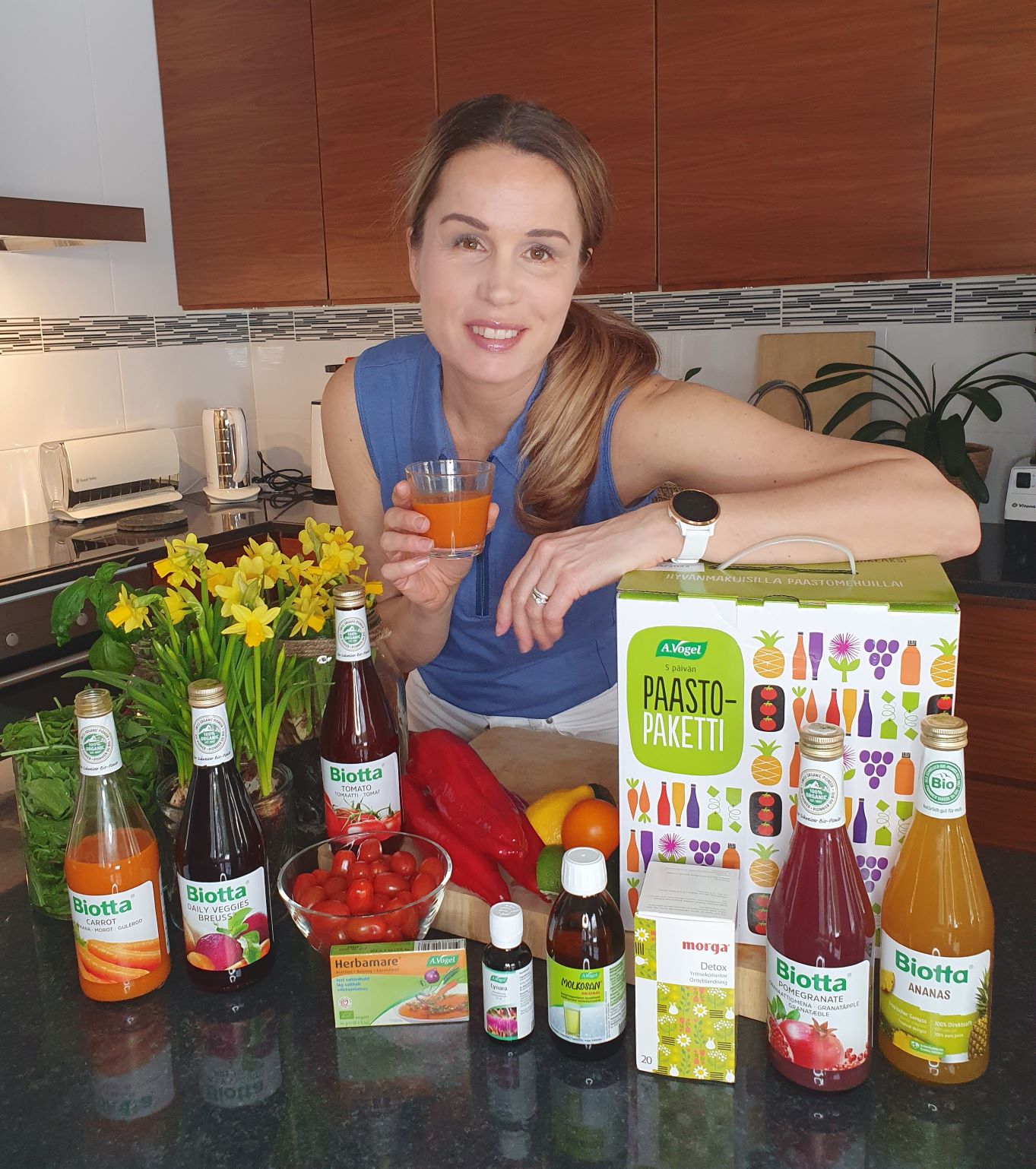Kauas on tultu niistä ajoista. Opiskeltuani paastoamista Terveysopisto Saluksessa aloin ymmärtää ihmisen fysiologiaa ja sitä, kuinka paasto vaikuttaa kehossa. A. Vogelin 5 päivän valmispaastopaketti on kuin luotu vaivattomaan ja kätevään kantolaatikkoon pakattuun paastokokemukseen. Itse puristetut mehut ovat myös sydäntäni lähellä, mutta mehujen puristaminen vie aikaa. Valmispaastopaketissa taas on mukana kaikki, mitä tarvitset sujuvaan paastoiluun. Sinun tarvitsee vain päättää paastoavasi.