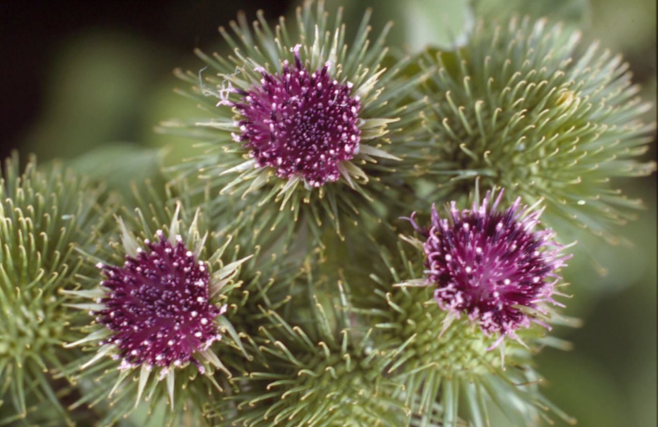 Takiainen ei ole ohdake. Ohdakkeissa on piikkejä, takiaisissa on raparperimaisia lehtiä ja kaikkeen tarttuvia kukkapalleroita.